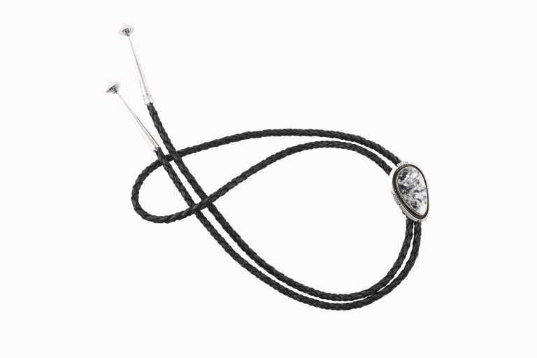 White Buffalo Pear Stone On Crimped/Twisted .925 Ss Bolo Tie With 44″ Black Leather By Scott Skeets – Navajo