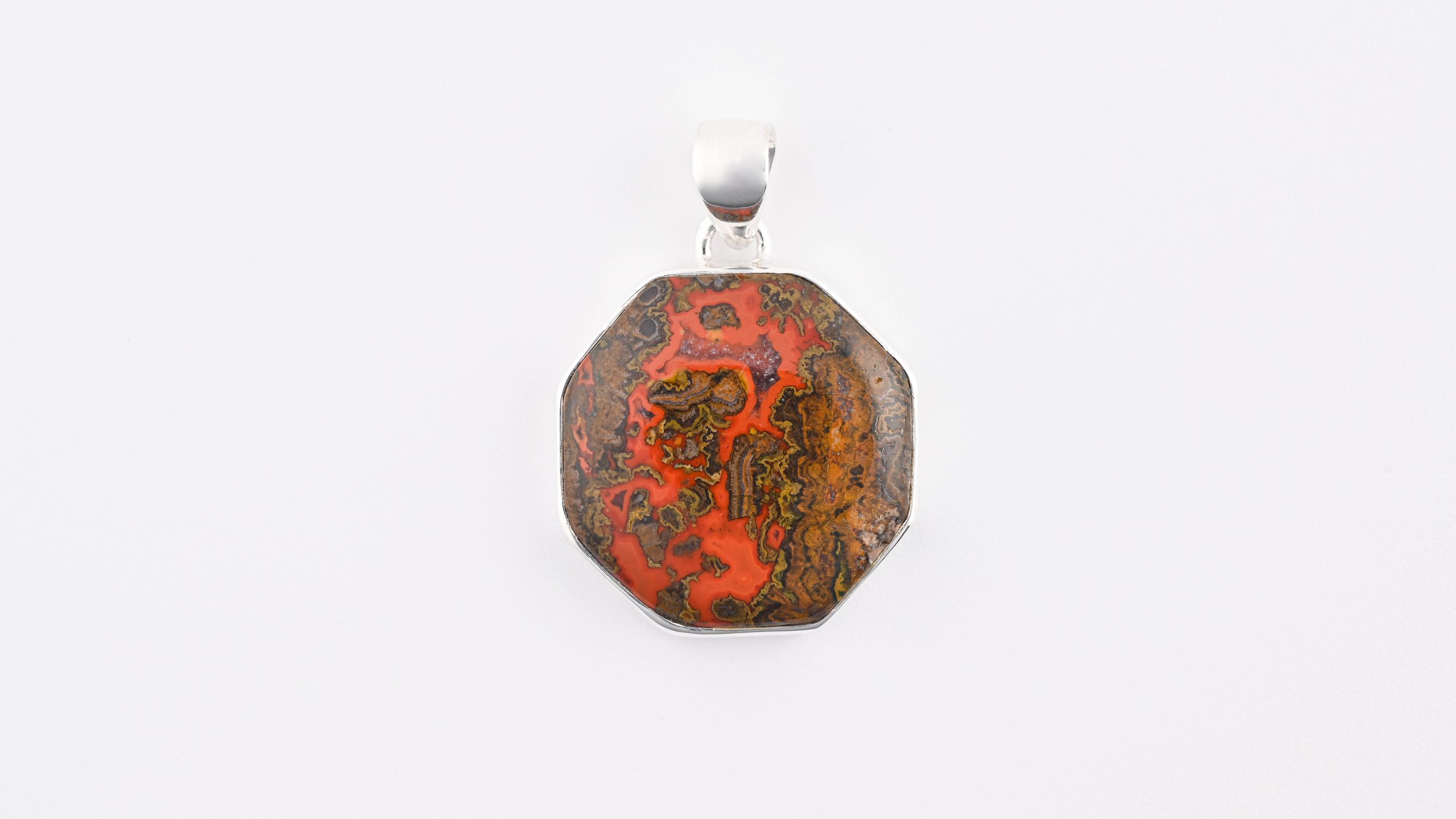 Assorted 0.925 Sterling Silver Pendant – Seam Agate (Turkey) Polished Octagon Stone