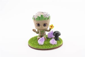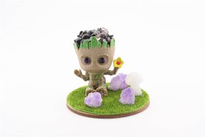 Baby Groot With Stone Chips In Resin, 3 Amethyst Points & Assorted Mini Mushroom – Angelite From Peru
