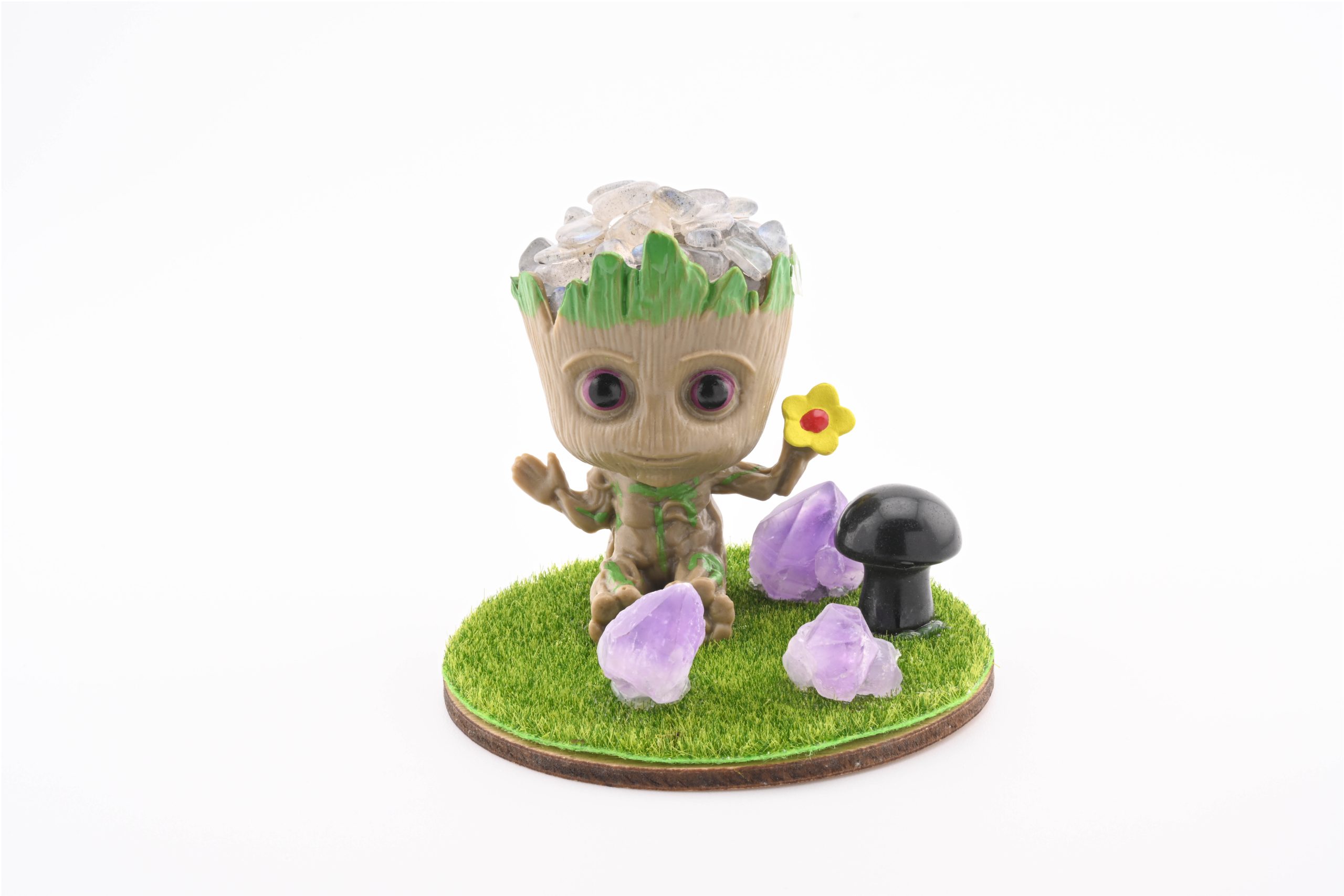 Be the first to review “Baby Groot With Stone Chips In Resin, 3 Amethyst Points & Assorted Mini Mushroom – Labradorite From Madagascar” Cancel reply