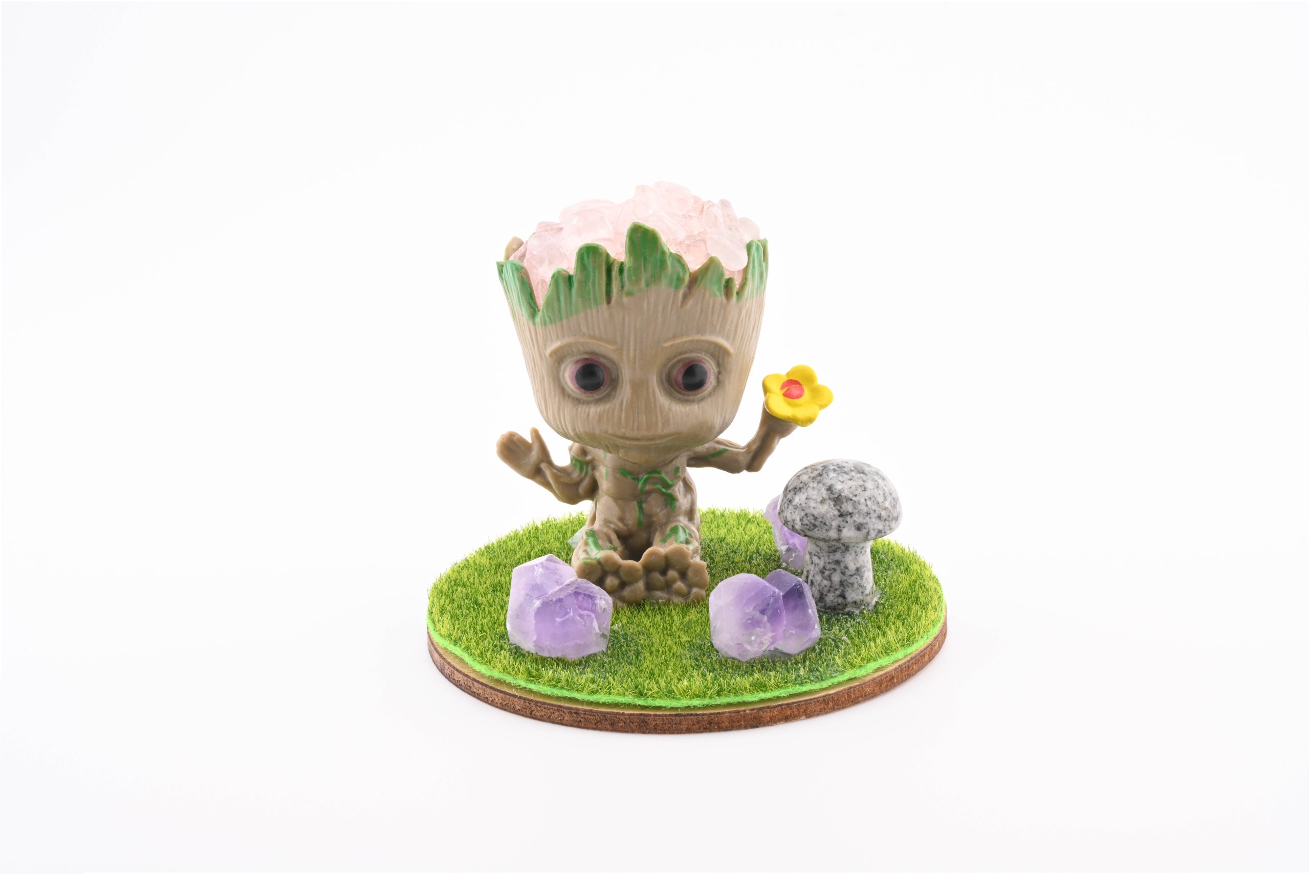 Baby Groot With Stone Chips In Resin, 3 Amethyst Points & Assorted Mini Mushroom – Rose Quartz From Brazil
