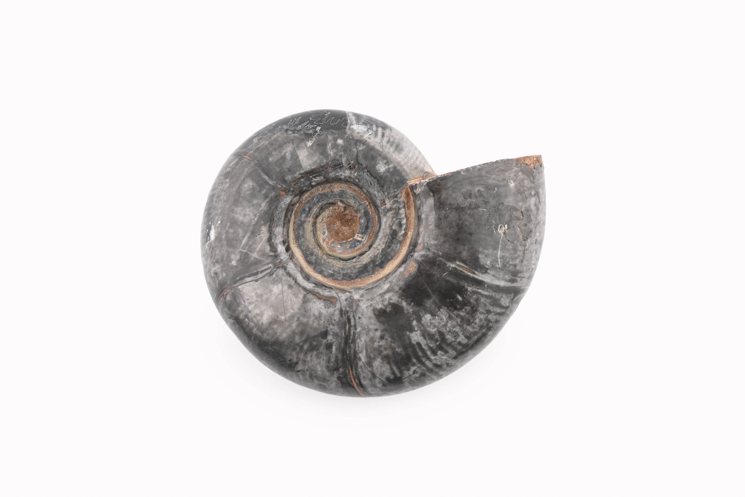 Black Ammonite Fossil With Calcite Polished Whole Specimen From Madagascar