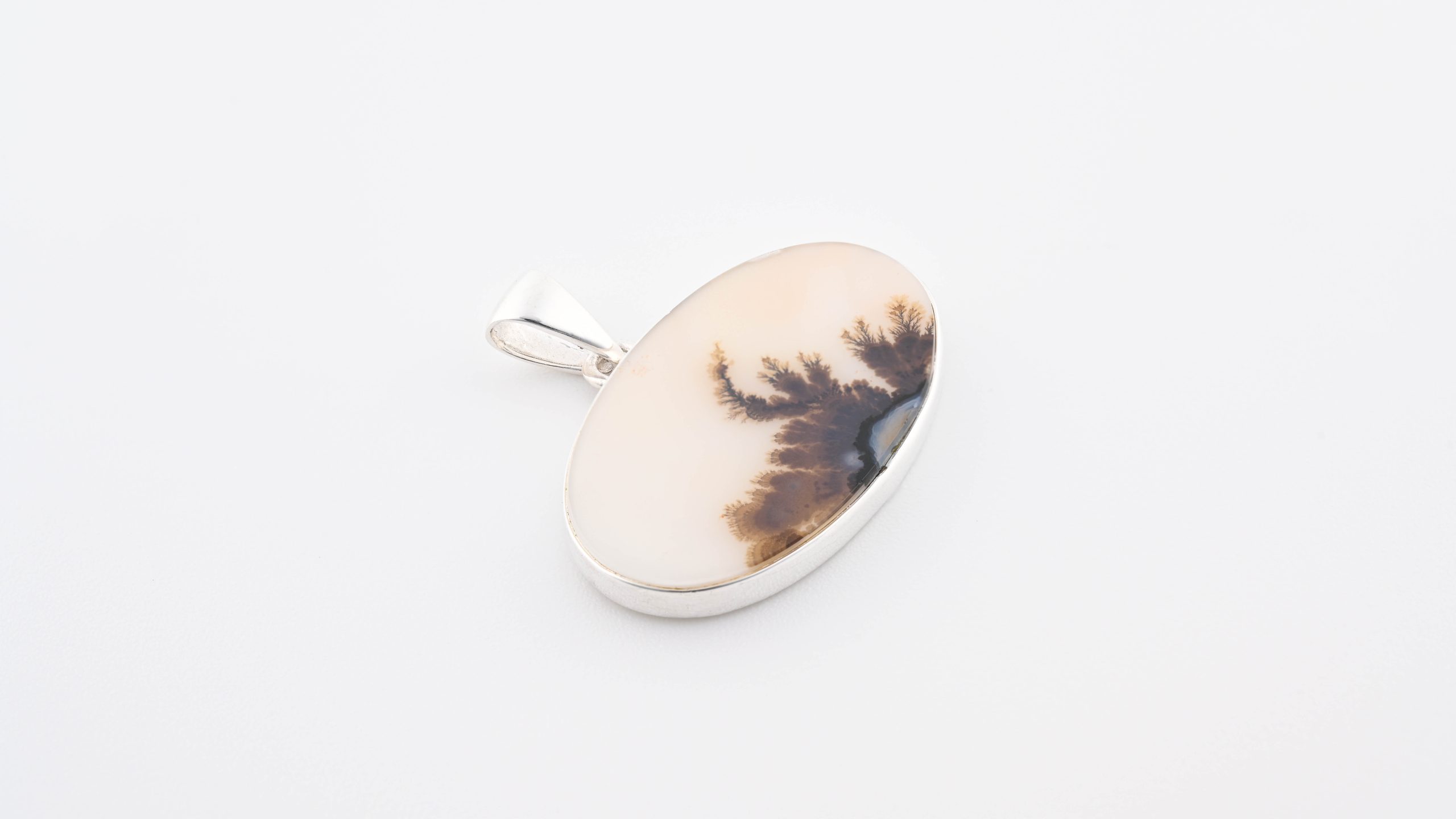 Dendritic Agate (India) Polished Stone on 0.925 Sterling Silver Pendant – Jumbo Horizontal Oval Stone