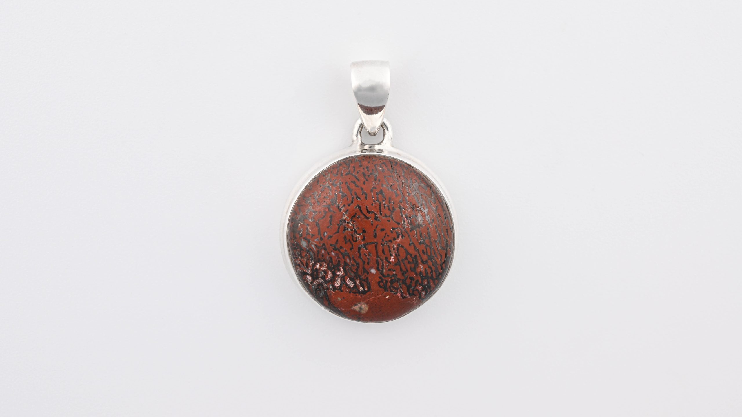 Dinosaur Bone Apatosaurus – 150 Mya (UT, USA) Polished Stone on 0.925 Sterling Silver Pendant – Circle Stone