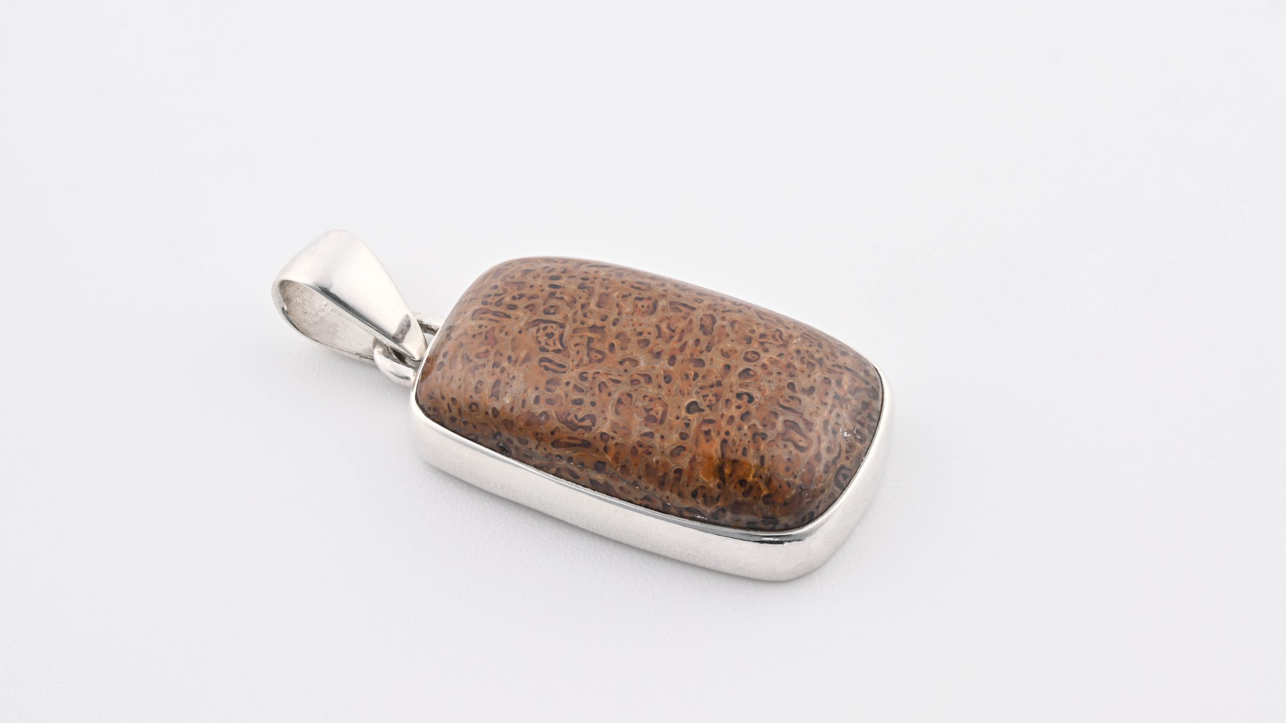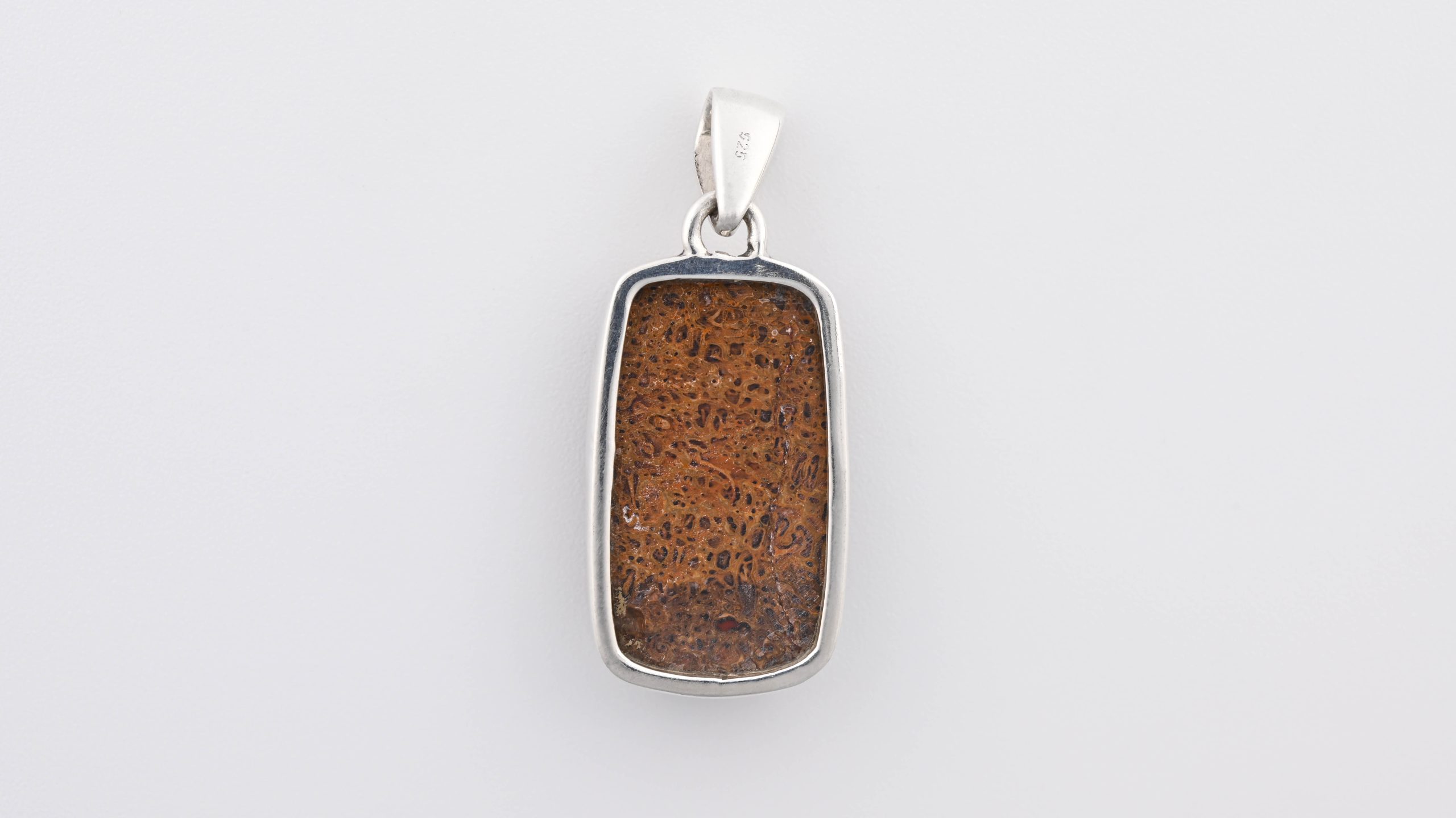 Dinosaur Bone Apatosaurus – 150 Mya (UT, USA) Polished Stone on 0.925 Sterling Silver Pendant – Medium Rectangular Stone