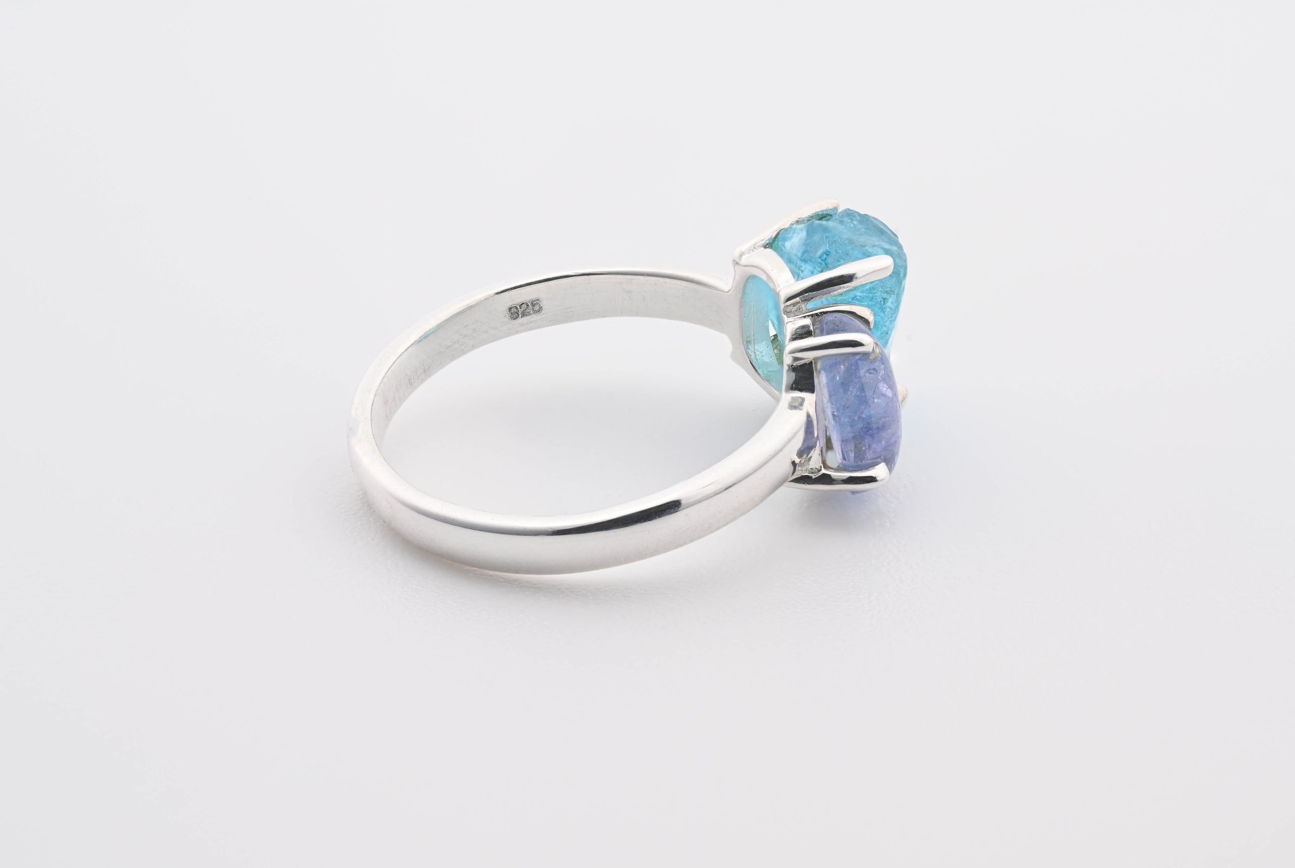 Double Stone Polished Tanzanite (Tanzania) & Rough Blue Apatite (Madagascar) On 0.925 Sterling Silver Ring Size – 8.75
