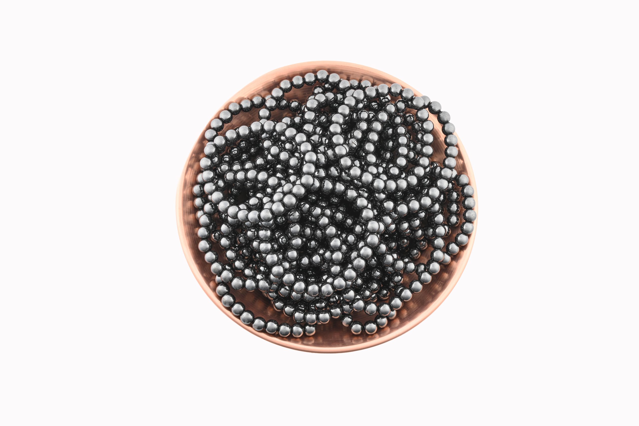 HEMATITE 8-9MM ROUND BEADS ON 8” LENGTH ELASTIC BEADED BRACELET