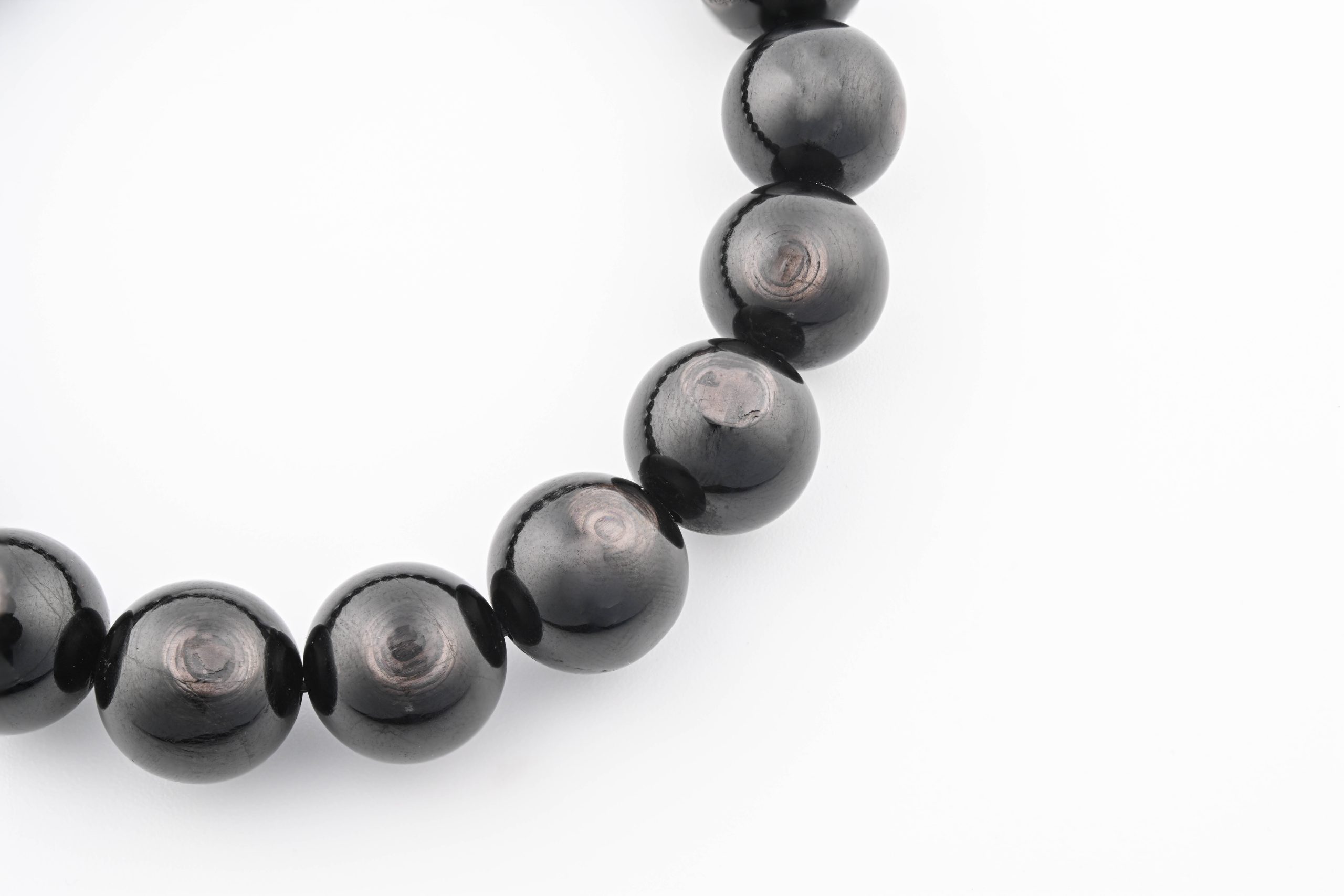 Hypersthene 12-13Mm Polished Round Beads On 9″ Length Elastic Beaded Bracelet From Canada