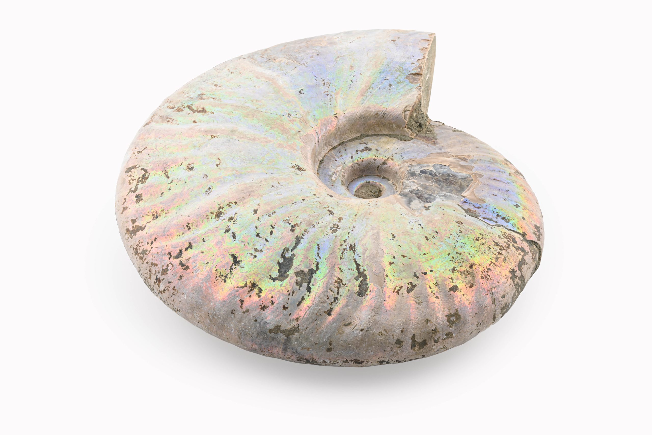 Rainbow Ammonite Fossil With Calcite Polished Whole Specimen From Madagascar