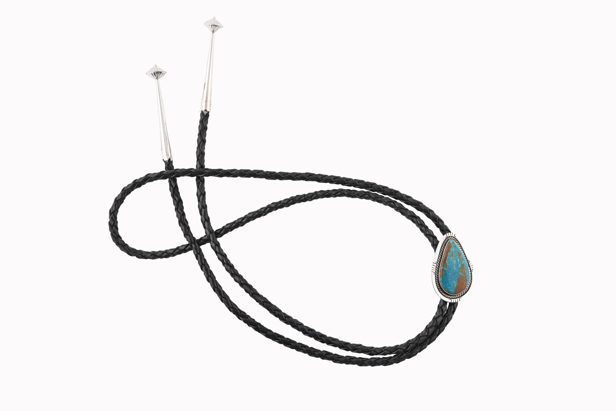 Be the first to review “Royston Boulder/Ribbon Turquoise Pear Stone On Crimped/Twisted .925 Ss Bolo Tie With 44″ Black Leather Scott Skeets – Navajo” Cancel reply