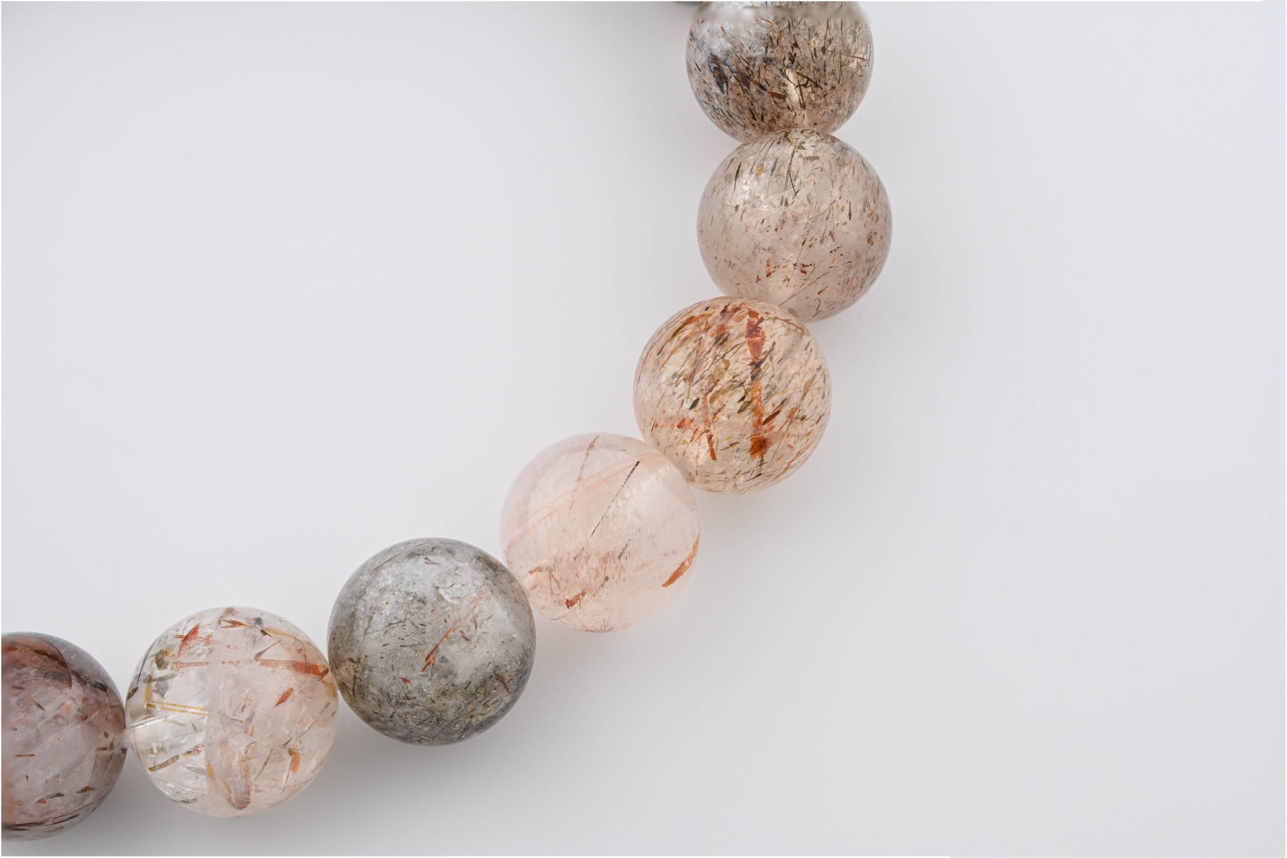 Rutliated Quartz 11-13Mm Polished Round Beads On 9.5-10″ Length Elastic Beaded Bracelet From Brazil