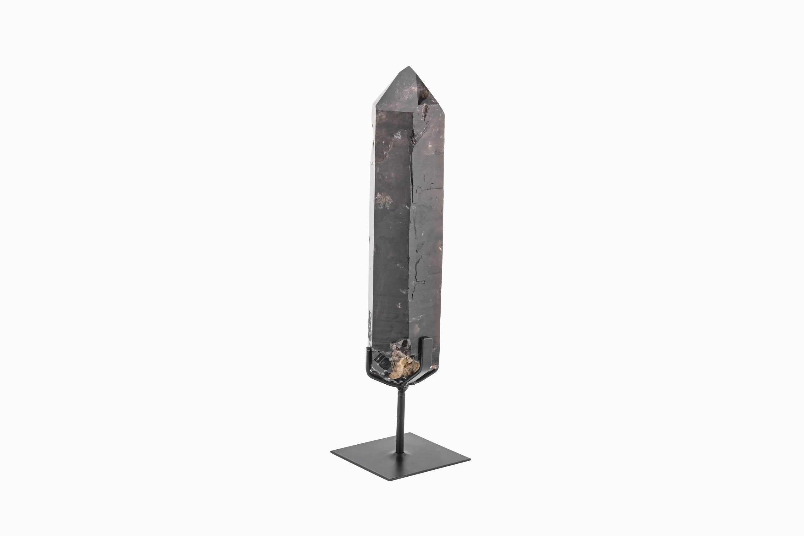 Smoky Quartz Crystal Point On Custom Black Iron Stand From Minas Gerais, Brazil