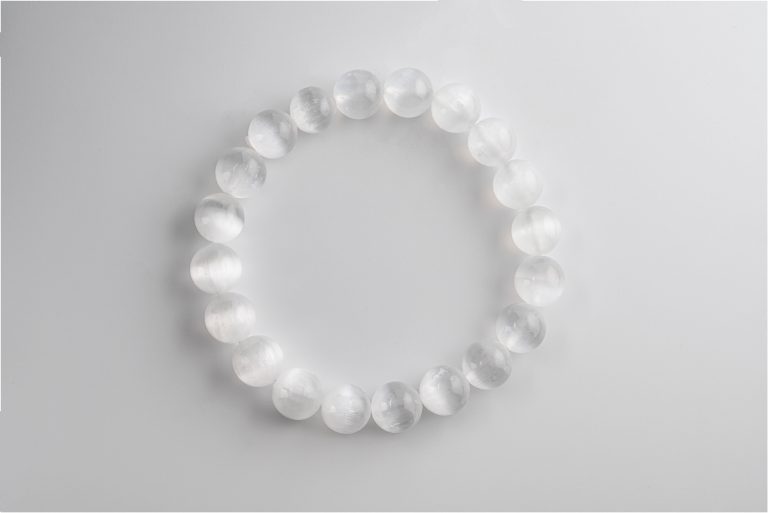 Selenite (Satin Spar) 12-13Mm Polished Round Beads On 10″ Length Elastic Beaded Bracelet From Morocco