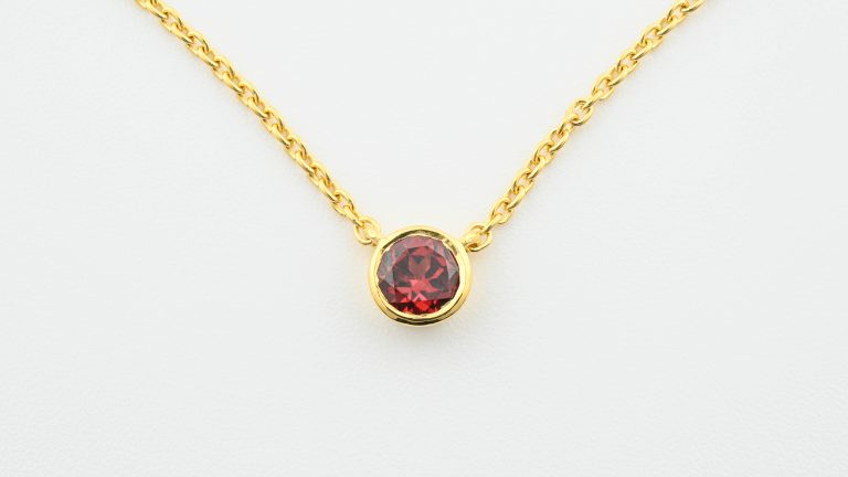 Faceted Stone On 18K Gold Vermeil .925 Ss 15″ Necklace Garnet (Mozambique) Brilliant Round Stone