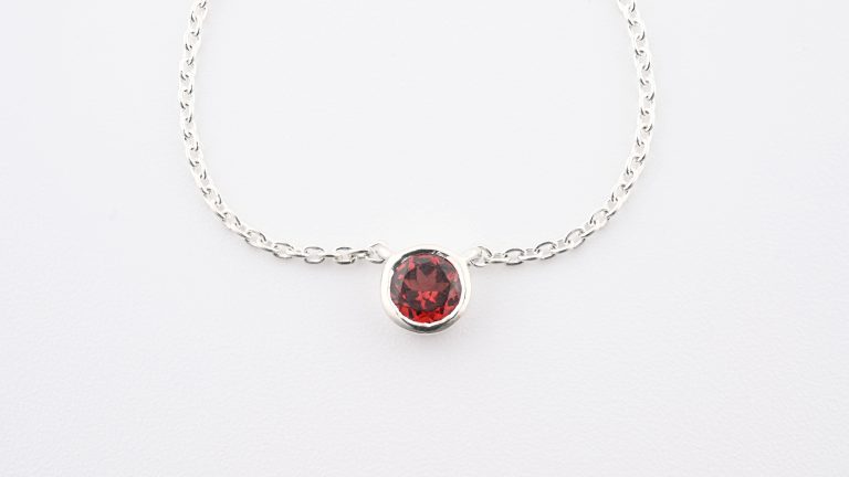 Faceted Stone Pairs On 0.925 Sterling Silver 15″ Necklace Garnet (Mozambique) Brilliant Round Stone