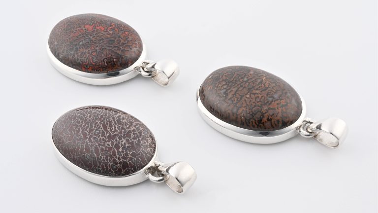Assorted 0.925 Sterling Silver Pendant – Montana Agate (MT, USA) Polished Oval Stone