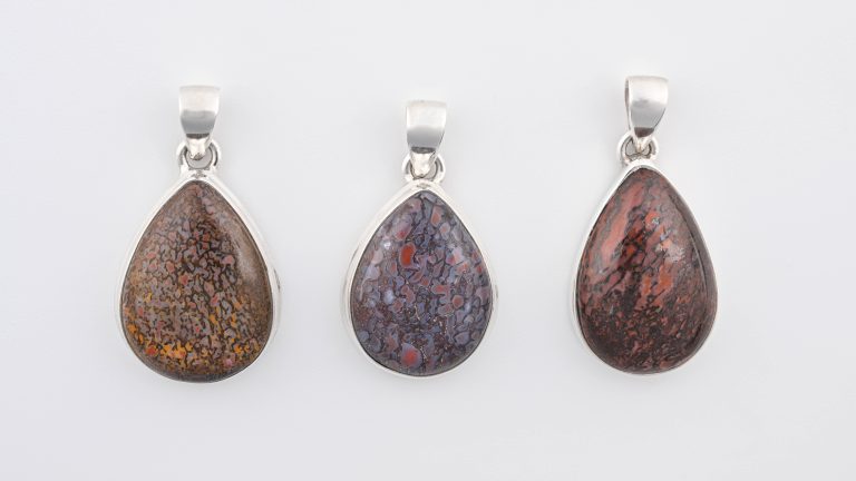 Dinosaur Bone Apatosaurus – 150 Mya (UT, USA) Polished Stone on 0.925 Sterling Silver Pendant – Small Pear Stone