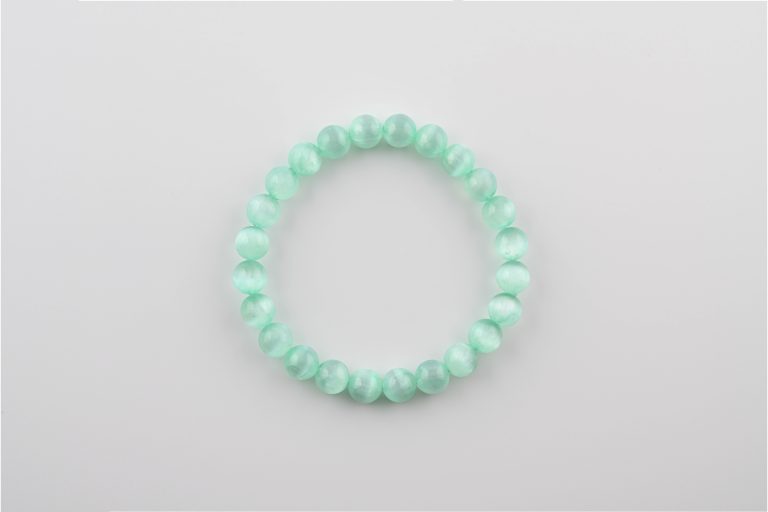 Teal Selenite (Satin Spar) 8-9Mm Polished Round Beads On 7.5″ Length Elastic Beaded Bracelet From Morocco