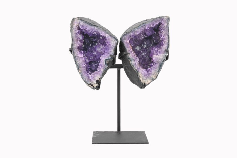 AMETHYST POLISHED DOUBLE WING GEODE CRYSTAL CLUSTER ON CUSTOM STAND FROM BRAZIL